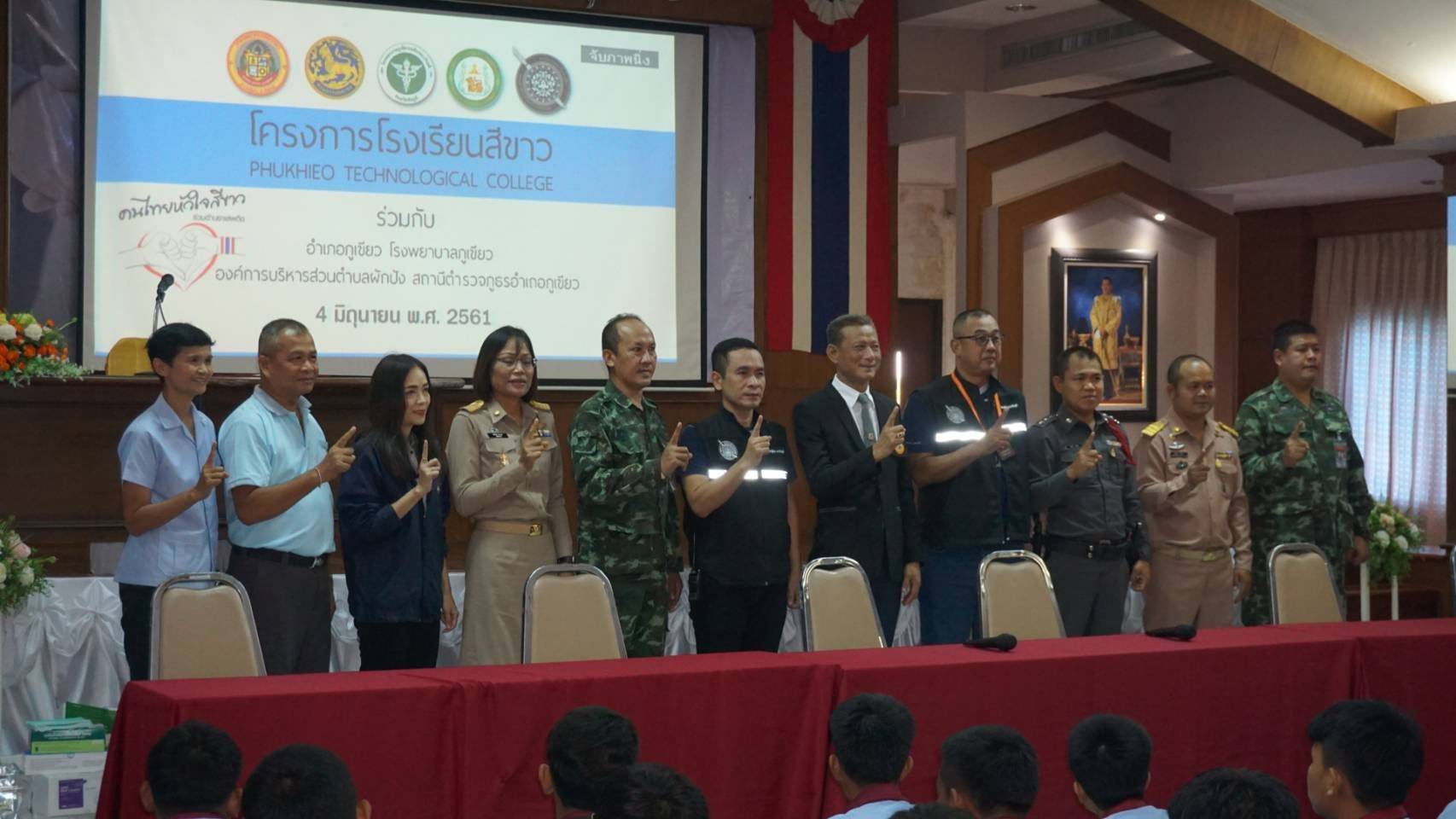 วันที่ 4 มิ.ย.61 เวลา 09.00 น.ผอ.ปปส.ภ.3 มอบหมายให้ผู้แทน ปปส.ภ.3ปฏิบัติราชการในพื้นที่จังหวัดชัยภูมิ เพื่อเข้าร่วมกิจกรรมโครงการโรงเรียนสีขาวปลอดยาเสพติด ณ วิทยาลัยเทคโนโลยีภูเขียว วัตถุประสงค์เพื่อการป้องกันและแก้ไขปัญหายาเสพติดในสถานศึกษา การให้ความรู้ด้านยาเสพติด รวมทั้งการจัดกิจกรรมในห้วงการรณรงค์ในเดือนต่อต้านยาเสพติดโลก 26 มิ.ย.61 โดยดำเนินการตรวจปัสสาวะหาสารเสพติดจากนักเรียนจำนวน 400 คน พบนักเรียนมีสารเสพติดในปัสสาวะและยอมรับเสพยาเสพติดจริงจำนวน 10 คน ซึ่งทางสถานศึกษาได้นัดหมายผู้ปกครองเพื่อชี้แจงทำความเข้าใจขั้นตอนและวิธีการบำบัดรักษาก่อนเข้ารับการบำบัดรักษาในความดูแลของสถานศึกษาและโรงพยาบาลภูเขียว ต่อไป