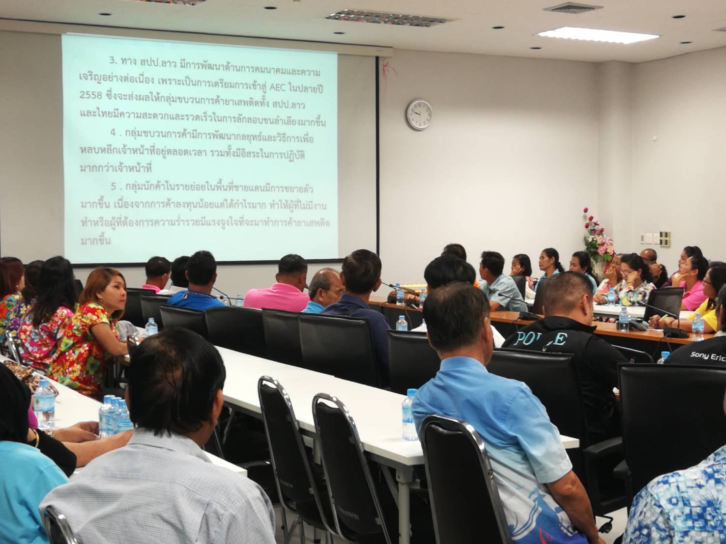 วันที่ 23 มีนาคม 2561 ศูนย์อำนายการแก้ไขปัญหายาเสพติด ส่วนรักษาความสงบเรียบร้อยและความมั่นคง สำนักปลัดเมืองพัทยา ได้พาคณะผู้นำชุมชน และสมาคมชุมชนเมืองพัทยา รวมจำนวน 200 คน เข้าศึกษาดูงานด้านการป้องกันและแก้ไขปัญหายาเสพติด พร้อมรับฟังสถานการณ์ปัญหายาเสพติดในพื้นที่ภาคตะวันออกเฉียงเหนือตอนล่าง ตามโครงการเร่งรัดพัฒนาประสิทธิภาพแก้ไขปัญหายาเสพติดเมืองพัทยา กิจกรรมฝึกอบรมผู้นำชุมชนปลุกพลังชีวิตสร้างพลังบวก (อบรมผู้นำชุมชน) ประจำปีงบประมาณ 2561 โดยมีวัตถุประสงค์เพื่อป้องกันและแก้ไขปัญหายาเสพติดอย่างจริงจัง ยั่งยืน สามารถควบคุมสถานการณ์ของปัญหายาเสพติดให้เห็นผลชัดเจนเป็นรูปธรรม รวมทั้งเพื่อให้ชุมชนได้รับความรู้ประสบการณ์ มีความพร้อม มีประสิทธิภาพและเป็นแบบอย่างที่ดี