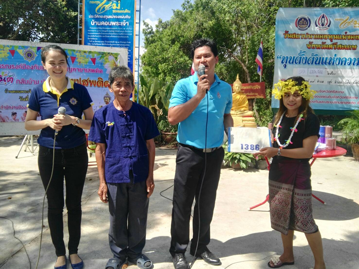 วันที่11 เมษายน 2560 ปปส.ภาค 3 โดยนางสาวระพีพันธุ์ ทัพเพ็ชร์ นักวิเคราะห์นโยบายและแผนชำนาญการ พร้อมด้วยนางสาวสุดารัตน์ ประทุมตา เจ้าหน้าที่วิเคราะห์นโยบายและแผน และนายไพรัช พยุงกลาง เจ้าหน้าที่วิเคราะห์นโยบายและแผน  เข้าร่วมกิจกรรมป้องกันและแก้ไขปัญหายาเสพติด "สงกรานต์ กลับบ้านปลอดภัยไร้ยาเสพติด" ณ บ้านดอนพระเจ้า ตำบลบุสูง อำเภอวังหิน จังหวัดศรีสะเกษ เพื่อเป็นการสืบสานประเพณีไทยเนื่องในวันสงกรานต์ประจำปี 2560 ซึ่งมีการดำเนินกิจกรรม ดังนี้ การรดน้ำขอพรจากพระเจ้าใหญ่สิมมา สิ่งศักดิ์สิทธิ์คู่บ้านดอนพระเจ้า, การสรงน้ำพระพุทธรูป, การรดน้ำขอพรผู้ใหญ่, การต่อยอดผ้าป่ากองทุนแม่ของแผ่นดิน และการแจกของชำร่วยจาก ป.ป.ส. เป็นต้น