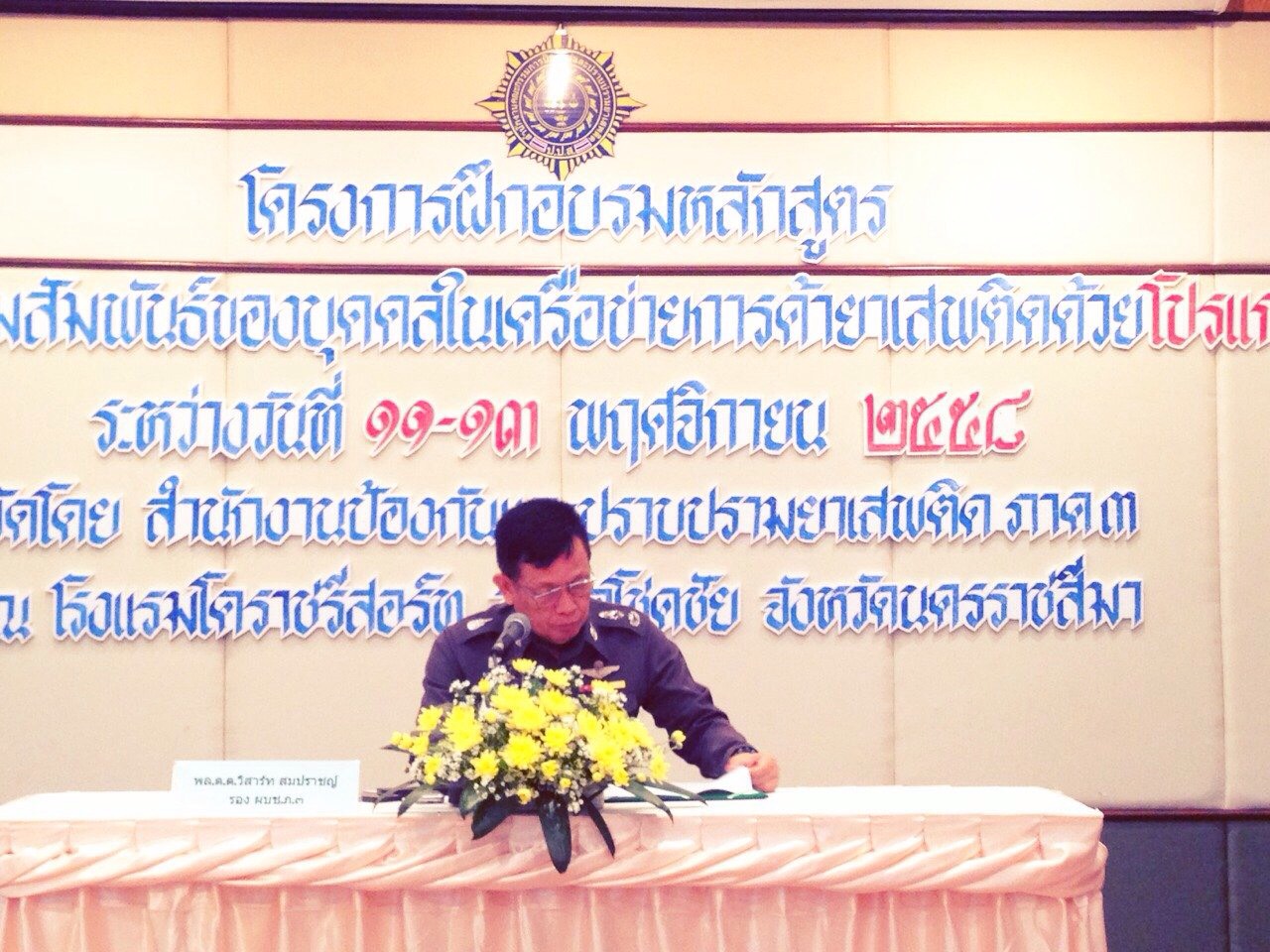 วันที่ 11 พฤศจิกายน 2558 สำนักงาน ปปส.ภาค 3 จัดโครงการฝึกอบรมหลักสูตร "การวิเคราะห์ความสัมพันธ์ของบุคคลในเครือข่ายการค้ายาเสพติด ด้วยโปรมแกรม I2" ในระหว่างวันที่ 11-13 พฤศจิกายน.2558 โดยมี พล.ต.ต.วิสาร์ท สมปราชญ์ รอง ผบช.ภ.3 (ผช.ปส.) เป็นประธานในพิธีเปิดและมี พลตรี ธัญญา เกียรติสาร เสธ ศอ.ปส.ชอน. ให้เกียรติมาร่วมพิธีเปิด ทั้งนี้ นายกฤติพงศ์ บุญผา ผอ.บก. เป็นผู้กล่าวรายงาน ณ โรงแรมโคราชรีสอร์ท ต.ท่าอ่าง อ.โชคชัย จว.นครราชสีมา สำหรับโครงการฯ ดังกล่าวเป็นโครงการฯ ที่สำนักงาน ปปส.ภาค 3 ได้จัดทำขึ้นเพื่อฝึกอบรมฯ ให้กับเจ้าหน้าที่ตำรวจในสังกัด ภ.3 , ข้าราชการทหารจาก กกล.สุรนารี ,ศอ.ปส.ชอน., ตชด.21-22 และเจ้าหน้าที่ของสำนักงาน ปปส.ภาค 3 รวม 60 คน