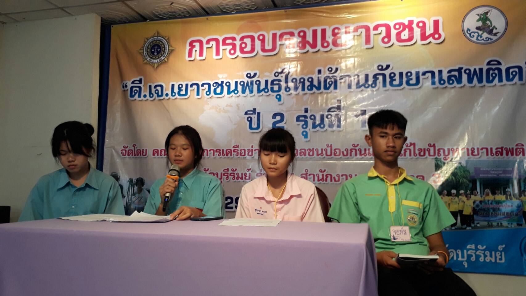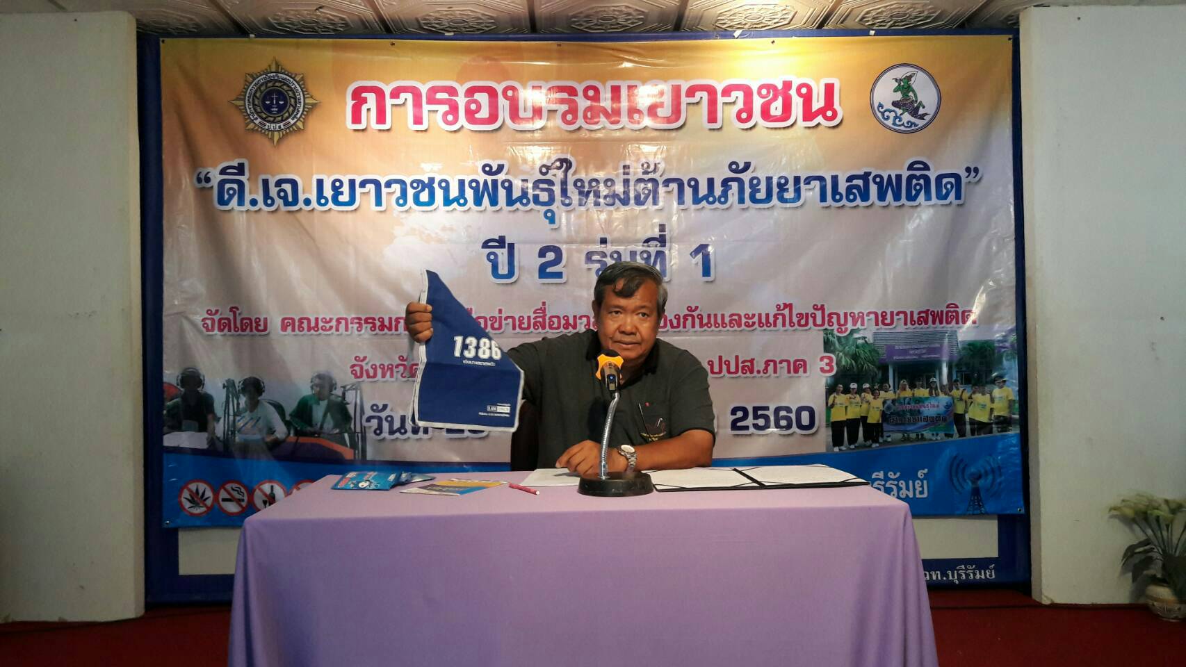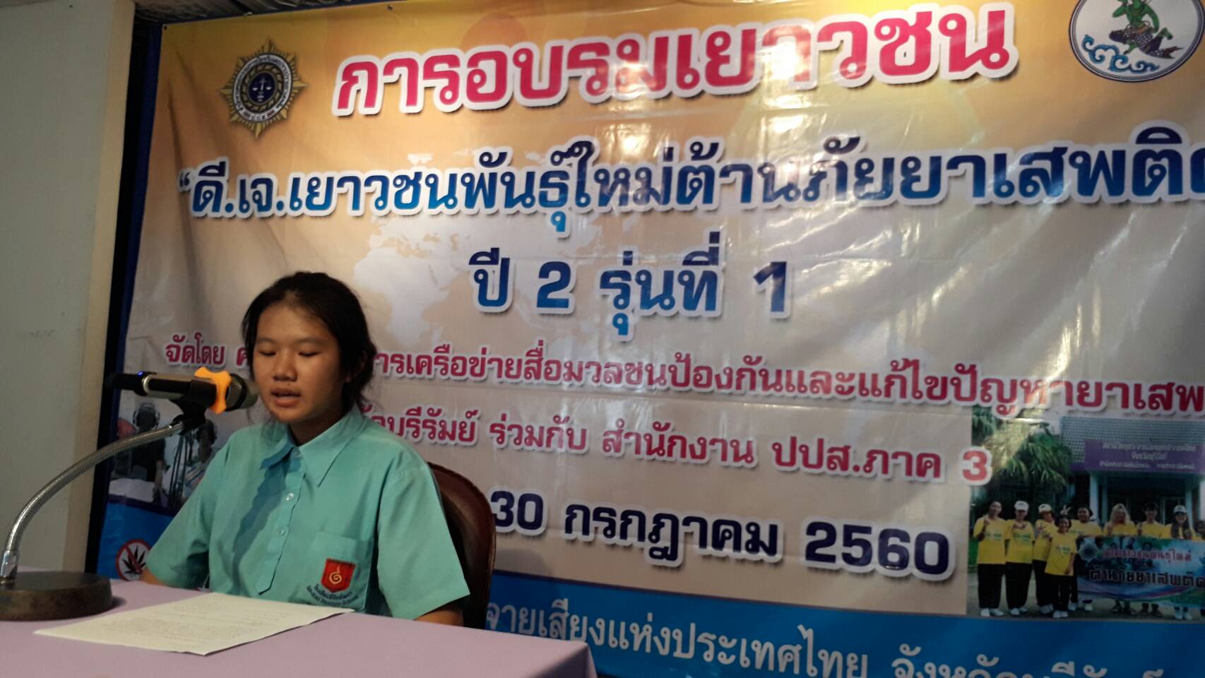 วันที่ 29 กรกฎาคม 2560  สำนักงาน ป.ป.ส. โดย นายสมบัติ ปุณณโอภาส ผู้อำนวยการส่วนประสานพื้นที่ ปปส.ภ.3 เป็นประธานในพิธีเปิดการอบรมดีเจ เยาวชนพันธุ์ใหม่ต้านภัยยาเสพติด ปี 2 รุ่นที่ 1 ในระหว่างวันที่ 29 - 30 กรกฎาคม 2560 ณ ห้องประชุมสถานีวิทยุกระจายเสียงแห่งประเทศไทยจังหวัดบุรีรัมย์ โดยมีนายสาโรจน์ ม่วงสมมุข  ประธานคณะกรรมการเครือข่ายสื่อมวลชนป้องกันและแก้ไขปัญหายาเสพติด จังหวัดบุรีรัมย์ ได้กล่าวถึงความเป็นมา        ความตั้งใจในการมีส่วนร่วม นำความรู้ด้านสื่อสารมวลชนมาให้กับเด็กและเยาวชน นอกจากนี้ ในงานยังมีผู้บริหาร ผู้แทนจากหน่วยงานที่เกี่ยวข้อง ได้แก่ สถานีวิทยุกระจายเสียงแห่งประเทศไทยจังหวัดบุรีรัมย์  สำนักงานประชาสัมพันธ์จังหวัดบุรีรัมย์ สำนักงานเขตพื้นที่การศึกษามัธยมศึกษาเขต 32 เข้าร่วมโครงการฯ