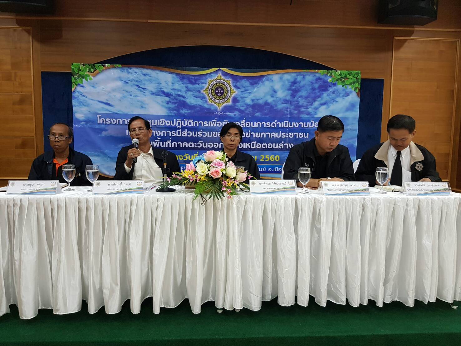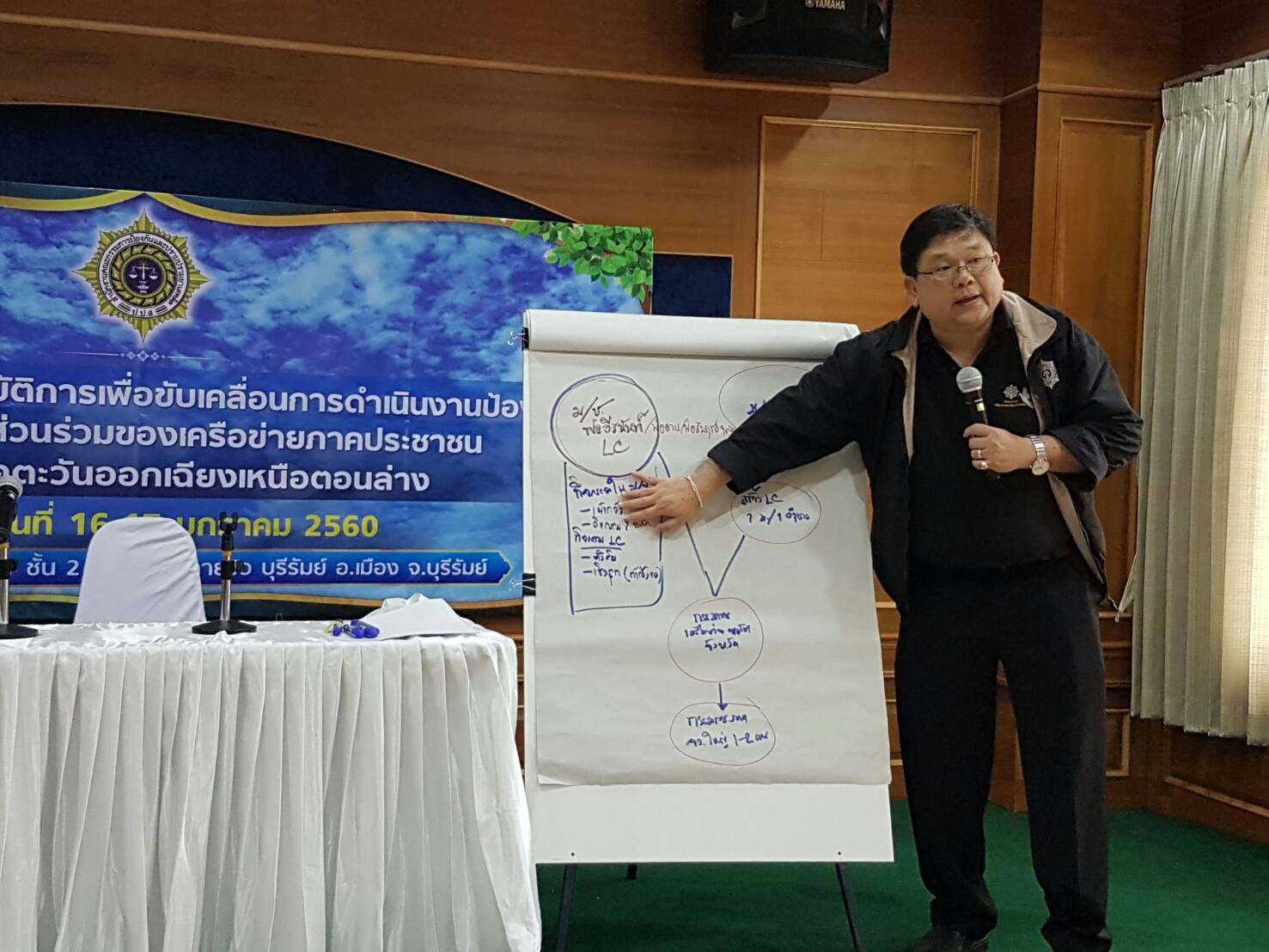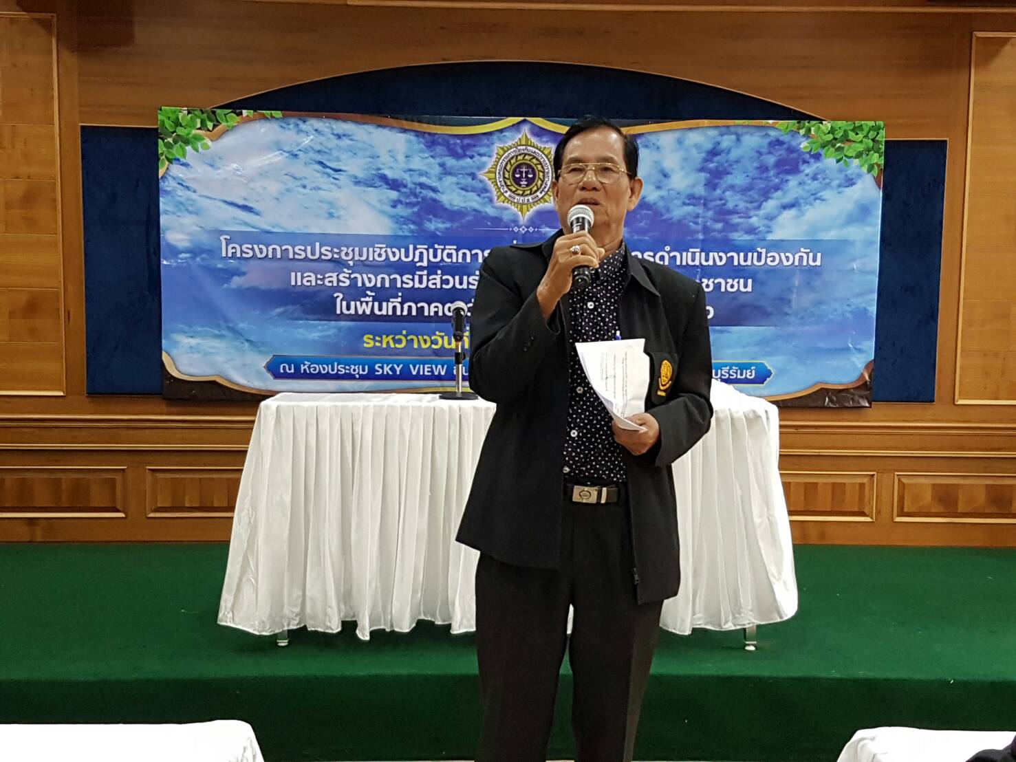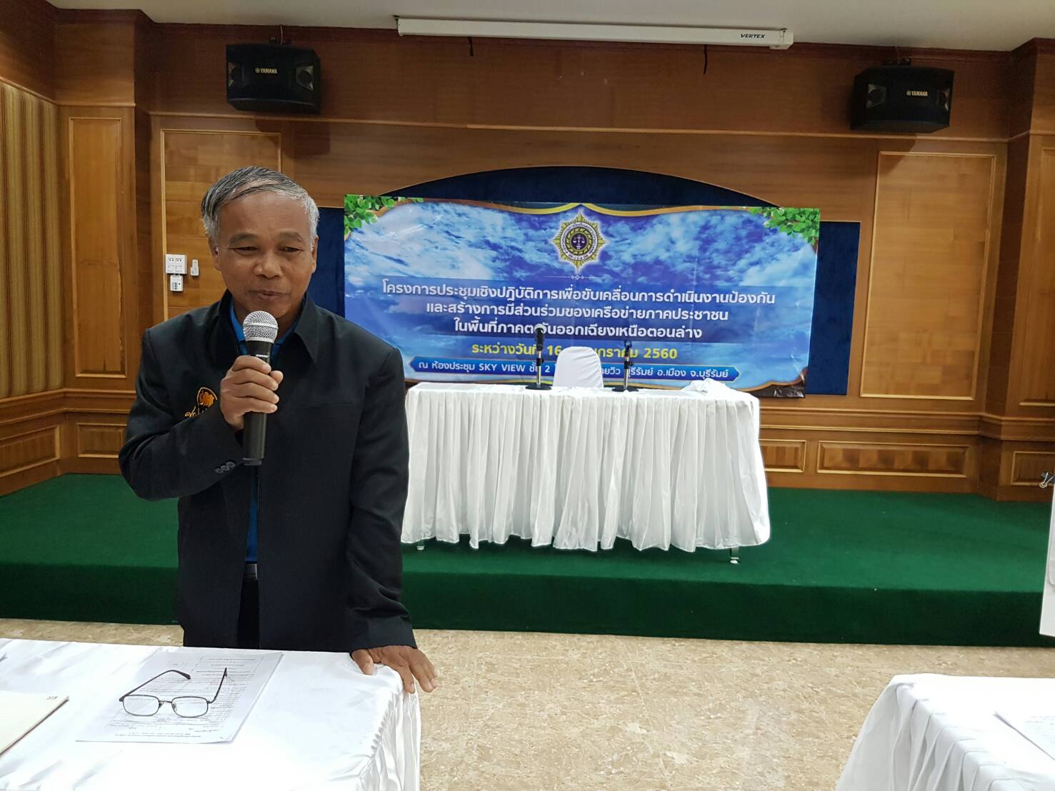 วันที่ 16 - 17 มกราคม 2560 สำนักงาน ปปส.ภาค 3 ดำเนินการจัดโครงการ “ประชุมเชิงปฏิบัติการเพื่อขับเคลื่อนการดำเนินงานป้องกันและสร้างการมีส่วนร่วมของเครือข่ายภาคประชาชนในพื้นที่ภาคตะวันออกเฉียงเหนือตอนล่าง” ระหว่างวันที่ 16 – 17 มกราคม 2560 ณ โรงแรม สกายวิว อำเภอเมือง จังหวัดบุรีรัมย์ โดยมี วัตถุประสงค์เพื่อให้ผู้เข้าประชุมได้รับทราบถึงแนวทาง กลไก กระบวนการการมีส่วนร่วมงานภาคประชาชน การแลกเปลี่ยนเรียนรู้การดำเนินงานของเครือข่ายภาคประชาชนในระดับพื้นที่ รวมถึงการจัดทำแผนงานกิจกรรมการขับเคลื่อนงานด้านการป้องกันและแก้ไขปัญหายาเสพติดในพื้นที่หมู่บ้าน/ชุมชน ปี 2560 อันเป็นส่วนหนึ่งในการสร้างการมีส่วนร่วมของภาคประชาชนและภาครัฐให้เกิดการเชื่อมโยงและพัฒนางานเครือข่ายภาคประชาชนงานชุมชนเข้มแข็งป้องกันยาเสพติดอย่างยั่งยืนต่อไป ทั้งนี้ ได้รับเกียรติจาก ท่านวิตถวัลย์ สุนทรขจิต ที่ปรึกษาการป้องกันและปราบปรามยาเสพติด เป็นประธานในพิธีเปิด-ปิดโครงการฯ พร้อมทั้ง มอบแนวทางการดำเนินงานตามนโยบายที่เกี่ยวข้องกับเครือข่ายภาคประชาชน ดังนี้ 1.)งานกองทุนแม่ของแผ่นดิน 2.)การดำเนินงานตามแผนประชารัฐฯ ปี 2560 เพื่อใช้ในการขับเคลื่อนงานในหมู่บ้าน/ชุมชน 3.)แลกเปลี่ยนความคิดเห็นเกี่ยวกับปัญหา/อุปสรรค ที่ผ่านมา 4.)เสนอแนวคิดในการขับเคลื่อนงานเครือข่ายภาคประชาชนเพื่อเป็นตัวอย่างความสำเร็จของภาคประชาชนทำให้เกิดการเรียนรู้ระหว่างภาคประชาชนด้วยกัน กลุ่มเป้าหมายเข้าร่วมประกอบด้วย คณะกรรมการป้องกันและแก้ไขปัญหายาเสพติดภาคประชาชนอีสานล่าง(คปช.ล.)/ประธานหรือคณะกรรมการเครือข่ายภาคประชาชนระดับจังหวัด 8 จังหวัด/ผู้ประสานงานภาคประชาชน(ชปช.) และ เจ้าหน้าที่ ปปส.ภ.3 จำนวนทั้งสิ้น 50 คน