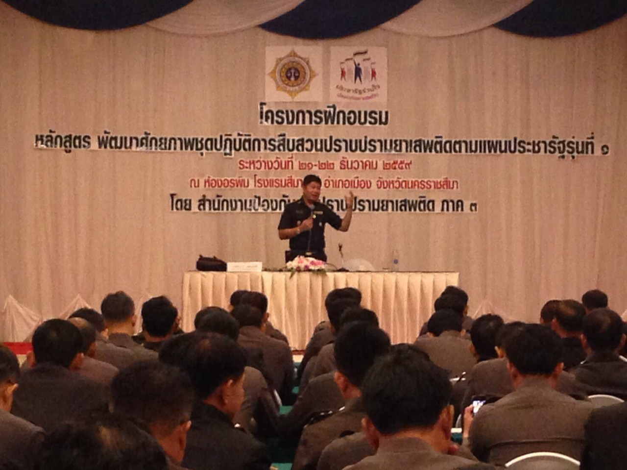 วันที่ 21-22 ธ.ค.2559 ปปส.ภ.3 จัดโครงการฝึกอบรมหลักสูตร พัฒนาศักยภาพชุดปฏิบัติการสืบสวนปราบปรามยาเสพติดตามแผนประชารัฐ รุ่นที่ 1 ผู้เข้าอบรมทั้งหมด 170 นาย ประกอบด้วยตำรวจชุดสืบสวนปราบปรามจากทุก สภ.ในพื้นที่ ภาค 3 ณ โรงแรมสีมาธานี อำเภอเมือง จังหวัดนครราชสีมา และได้รับเกียรติจาก พล.ต.ต.คีรีศักดิ์ ตันตินวชัย รองผู้บัญชาการตำรวจภูธรภาค 3 เป็นประธานในพิธีเปิดและปิด ทั้งนี้ นายอำนาจ เหล่ากอที ผู้อำนวยการส่วนอำนวยการบังคับใช้กฎหมาย ได้เป็นวิทยากรบรรยาย ร่วมกับอดีตรองเลขาธิการ ป.ป.ส.(นายสุขุม โอภาสนิพัทธ์) อดีต ผบช.ปส.(พล.ต.ท.เรวัช กลิ่นเกษร และอดีตผู้อำนวยการสำนักปราบปรามยาเสพติด สำนักงาน ป.ป.ส. (นายสิทธิศักดิ์ กัลยาณประดิษฐ์)