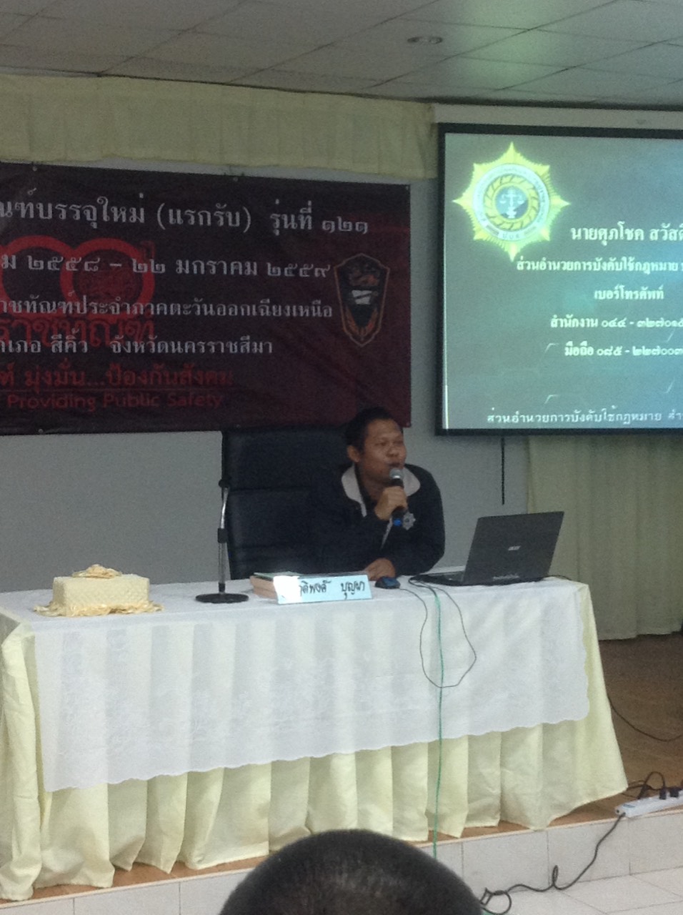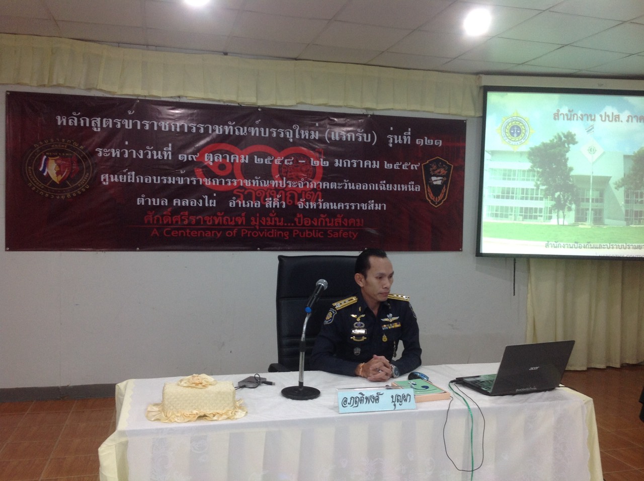 วัน พุธ ที่ 4 พฤศจิกายน 2558 สำนักงาน ปปส.ภาค 3 โดย นายกฤติพงศ์ บุญผา ผอ.บก. เป็นวิทยากรบรรยาย"สถานการณ์และแนวโน้มปัญหายาเสพติด ปี 2559 นโยบายและแผนปฏิบัติการป้องกันและแก้ไขปัญหายาเสพติด ปี 2559" และ นายศุภโชค สวัสดี นสส.ชก. เป็นวิทยากรบรรยาย "ความรู้ทั่วไปเกี่ยวกับยาเสพติด การตรวจสอบหาสารเสพติดในปัสสาวะ" ให้กับข้าราชการบรรจุใหม่(แรกรับ) รุ่นที่ 121 ของกรมราชทัณฑ์ ณ ศูนย์ฝึกอบรมข้าราชการราชทัณฑ์ประจำภาคตะวันออกเฉียงเหนือ ต.คลองไผ่ อ.สีคิ้ว จ.นครราชสีมา