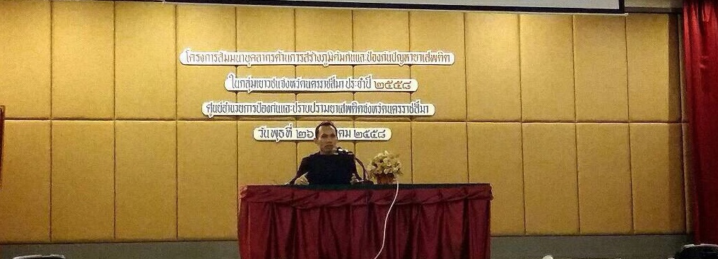 วันนี้ 26 สิงหาคม 2558 สำนักงาน ปปส.ภาค 3 โดยนายกฤติพงศ์ บุญผา ผู้อำนวยการส่วนอำนวยการบังคับใช้กฎหมาย(บก.) เป็นผู้แทน ผอ.ปปส.ภาค 3 ร่วมเป็นเกียรติพิธีเปิดการสัมมนาและบรรยายสถานการณ์ยาเสพติด ในโครงการสัมมนาบุคลากรด้านการสร้างภูมิคุ้มกันและป้องกันปัญหายาเสพติดในกลุ่มเด็กและเยาวชนจังหวัดนครราชสีมา ผู้เข้าสัมมนาประกอบด้วย ผู้แทน ปปส.ภาค 3 ฝ่ายปกครอง ตำรวจ(ครูแดร์) ครูอาจารย์ สาธารณสุข ทหาร สภาเด็ก อปท. และตัวแทนเยาวชน จำนวน 180 คน โดยมี นายวินัย วิทยานุกูล รองผู้ว่าราชการจังหวัดนครราชสีมา เป็นประธานในพิธี ณ โรงแรมรายาแกรนด์ ถนนสืบศิริ อ.เมือง จ.นครราชสีมา