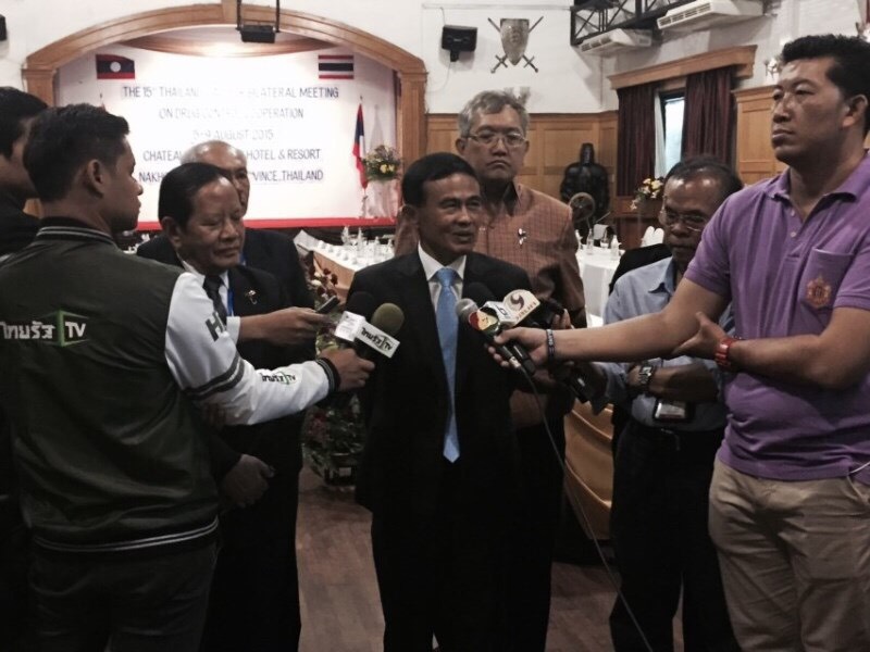 วันที่ 7 สิงหาคม 2558 เวลา 10.00 น. พลเอกไพบูลย์ คุ้มฉายา รัฐมนตรีว่าการกระทรวงยุติธรรม เป็นประธานการประชุมระดับรัฐมนตรีทวิไทย-ลาว ว่าด้วยความร่วมมือด้านการป้องกันและปราบปรามยาเสพติด ณ โรงแรมชาโตเดอเขาใหญ่ จังหวัดนครราชสีมา โดยท่านกุ จันสินา ประธานคณะกรรมการแห่งชาติลาวว่าด้วยการตรวจตราและควบคุมยาเสพติด หัวหน้าคณะผู้แทน สปป.ลาว เป็นประธานร่วม ผู้แทนฝ่ายไทยมี นายเพิ่มพงษ์ เชาวลิต เลขาธิการ ป.ป.ส. ในฐานะหัวหน้าคณะผู้แทนระดับเจ้าหน้าที่อาวุโส พร้อมด้วย นางสาวรัชนีกร สรสิริ รองเลขาธิการ ป.ป.ส. ผู้อำนวยการสำนักปราบปรามยาเสพติด ผู้อำนวยการสำนักการต่างประเทศ ผู้อำนวยการสถาบันวิชาการและตรวจพิสูจน์ยาเสพติด ผู้อำนวยการสำนักงาน ปปส. ภาค 3-6 และเจ้าหน้าที่ที่เกี่ยวข้อง ผู้บัญชาการ ปส. ที่ปรึกษาด้านความมั่นคง มท. ผู้อำนวยการสถาบันธัญญารักษ์ ผู้แทนมูลนิธิโครงการหลวง